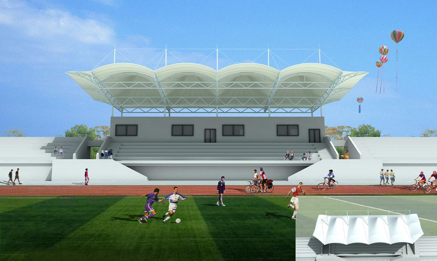 2、體育膜結構看臺的外觀設計一向都是露天的,所以在設計的時候我們需要注意它的承重力,因為一般都是單側建造或者環繞建造,必須有無數個支撐點才能讓整個頂子具有強抗風、抗震的功能 體育場看臺一般都是高大上的感覺,外觀別具特色,實用性也不錯。同時這種看臺在夏季比賽的時候,觀眾特別希望可以坐在遮陽效果好的一面,那么我們就需要把這些因素考慮進去。盡量讓設計大面積的有遮陽效果,最后在膜結構裁剪的時候要量好尺寸,這樣每塊材料才能很好的焊接成功。做到這些,一個完美又實用的體育場看臺就會很快展現在眼前了。